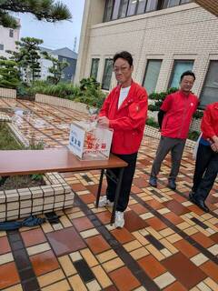 雨の中にもかかわらず、たくさんの人に来ていただきました。また、献血も43人の方にしていただきました。